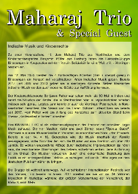 Bereits in den Jahren 2017, 2019 und 2023 war die indische Musikgruppe „Maharaj Trio“ in Wertingen. Auch in diesem Jahr gibt es auf Einladung der Fair-Trade-Gruppe Binswangen in Kooperation mit dem Weltladen Wertingen wieder ein Konzert mit den herausragenden indischen Musikern.