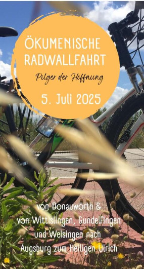 Machen Sie sich gemeinsam mit evangelischen und katholischen Christen als "Pilger der Hoffnung" mit dem Fahrrad oder E-Bike auf den Weg. Startpunkte sind Donauwörth sowie Wittislingen, Gundelfingen und Weisingen - Ziel ist die beeindruckende Basilika St. Ulrich in Augsburg.