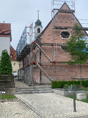 Direkt neben der Wertinger Stadtpfarrkirche befindet sich die Seelenkapelle. Das Gebäude gehört der Stadt Wertingen und beherbergt das Kriegerdenkmal der Stadt Wertingen. Seit einigen Jahren ist die Kapelle eingerüstet. Nun gehen die Renovierungsarbeiten voran. Das bedeutet aber auch Einschränkungen für die Fußgänger.